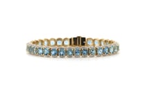 14K YELLOW GOLD, AQUAMARINE AND DIAMOND, TENNIS...