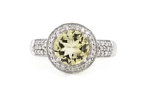 14K WHITE GOLD, HELIODOR AND DIAMOND, HALO RING....