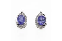 14K WHITE GOLD, TANZANITE AND DIAMOND, STUD...