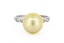 14K WHITE GOLD, GOLDEN CULTURED SOUTH SEA PEARL...