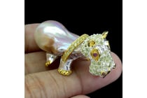 NATURAL PEARL & PERIDOT HIPPO PENDANT....