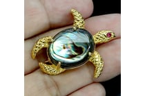 NATURAL RUBY & MOTHER OF PEARL TURTLE PENDANT....