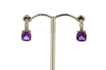 9K YELLOW GOLD, AMETHYST AND DIAMOND, EARRINGS....
