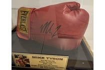 MIKE TYSON SIGNED BOXING GLOVE IS DISPLAY...