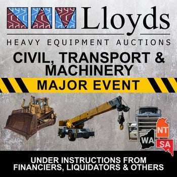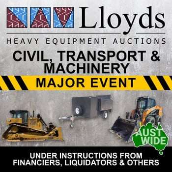 Highest Price With a dedicated team and proven track record, you can rest assured to achieve the highest price at auction. Fast Payment Once your lots have sold, the payment is processed and everything is promptly handled by our friendly team. Simple to List Our hassle free platform makes selling as easy as possible, ensuring a smooth and safe experience for all sellers. Submit your details using the form below & we will be in touch fast. Name (Required) First Last Phone (Required) Email (Required) State (Required) QLD NSW VIC SA WA NT ABN or ACN (Required) Category (Required) Transport EquipmentCivil and Machinery EquipmentMining and EarthmovingAgricultureManufacturing and EngineeringCommercial Fleet Tell us a little bit more... Send Current Civil, Transport & Machinery Auctions At Lloyds Auctions, we are Australia’s premier destination for heavy equipment and machinery sales. Specialising in a comprehensive range of heavy-duty vehicles, we offer auctions for bulldozers, excavators, dump trucks, forklifts, tractors, and many more. Catering to diverse needs, our inventory spans from construction and earthmoving equipment to civil and agricultural machinery. Fri, 27 Mar 10:00 AM Sat, 28 Mar 7:00 PM Sun, 29 Mar 7:00 PM Mon, 30 Mar 2:00 PM Tue, 31 Mar 10:00 AM Tue, 31 Mar 10:00 AM Tue, 31 Mar 10:00 AM Tue, 31 Mar 10:30 AM Tue, 31 Mar 11:00 AM Tue, 31 Mar 11:00 AM Tue, 31 Mar 12:00 PM Tue, 31 Mar 12:30 PM Tue, 31 Mar 1:00 PM Tue, 31 Mar 1:30 PM Tue, 31 Mar 2:00 PM Tue, 31 Mar 2:00 PM Tue, 31 Mar 2:30 PM Tue, 31 Mar 3:00 PM Tue, 31 Mar 3:30 PM Tue, 31 Mar 5:00 PM Tue, 31 Mar 7:00 PM Tue, 31 Mar 7:00 PM Tue, 31 Mar 7:00 PM Tue, 31 Mar 7:00 PM Tue, 31 Mar 7:00 PM Wed, 01 Apr 10:00 AM Wed, 01 Apr 11:00 AM Wed, 01 Apr 11:00 AM Wed, 01 Apr 11:30 AM Wed, 01 Apr 12:00 PM Wed, 01 Apr 2:00 PM Sun, 05 Apr 7:00 PM Wed, 08 Apr 10:00 AM Wed, 08 Apr 10:00 AM Wed, 08 Apr 12:00 PM Wed, 08 Apr 12:00 PM Wed, 08 Apr 2:00 PM Fri, 10 Apr 2:00 PM Wed, 15 Apr 10:00 AM Wed, 15 Apr 11:00 AM IT'S EVEN POSSIBLE TO SELL TO LLOYDS - CLICK HERE PREFER A CHEQUE? LEARN MORE ABOUT LLOYDS IMMEDIATE ASSET & COMMERCIAL FLEET PURCHASE OPTIONS.Unlock the potential of your assets immediately. Our team specialises in strategic portfolio acquisitions, offering seamless transactions for your diverse range of asset holdings. Whether you’re streamlining your business or seeking new opportunities, we provide tailored solutions to maximise the value of your asset portfolio. Let us guide you through the process with expertise and confidentiality, ensuring a smooth transition and realising the full potential of your investments. Contact us now to explore how we can elevate your portfolio to new heights. Contact our expert buying team! Name (Required) Phone (Required) Email (Required) State (Required) QLD NSW VIC SA WA NT ABN or ACN (Required) Asset/s to Sell (Required) Tell us about your asset's (Required) PRE-AUCTION ADVANCED VENDOR CASH - FIND OUT MORE CASH RELEASE! LIST YOUR ASSETS USING OUR SECURITY PLATFORM – NO FINANCIALS REQUIRED. Learn more about advanced partial vendor payments with Lloyds.Whether your business needs help with cash flow, repaying debt and overheads or purchasing more assets for the business, advanced partial vendor payments could be the short term solution for you.You can secure fast cash for assets that you own against your business.What do you need to apply?1. An active ABN or ACN. 2. Asset must be owned outright.3. Willing for assets to be held at Lloyds premises.Our partnership with Asset Based Lending means that we can help your business navigate those short term financial challenges.Whether its for a single asset or multiple assets, this opportunity can be applied for against the following asset classes; transport and trailers, inventory stock, aircraft & aviation, vehicles, recreational vehicles (RV), marine, civil & heavy equipment. Contact our finance funding partner today! Name (Required) Phone (Required) Email (Required) State (Required) QLD NSW VIC SA WA NT Tell us about your asset's (Required) ABN or ACN (Required)