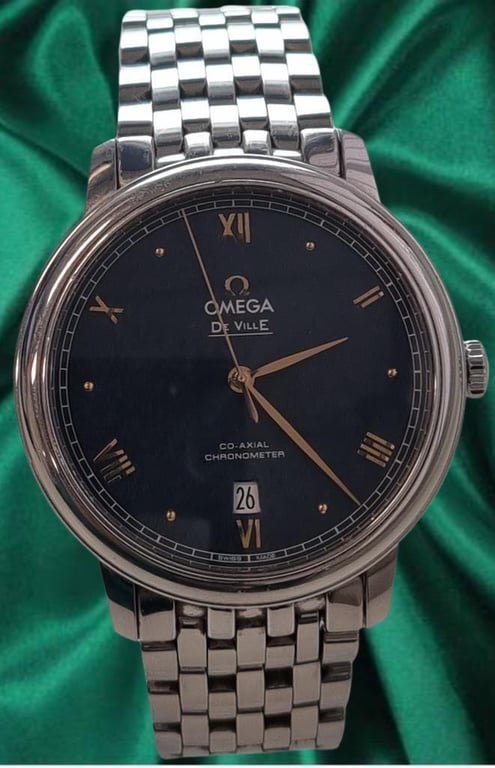2022 OMEGA DE VILLE 4241********** Price Guide - $3,500 - $circa REFERENCE NO. 4241********** CASE DESCRIPTION: STAINLESS STEEL CASE SIZE: 39.5MM BRACELET: STAINLESS STEEL BOX: NOT INCLUDED CARDS: INCLUDED Condition: Good - Refer To Images Additional Information: Co Axial Chronometre 4881172+8