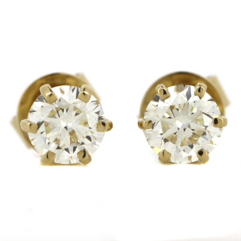 14K YELLOW GOLD, 1.01CT TDW DIAMOND, STUD EARRINGS.
