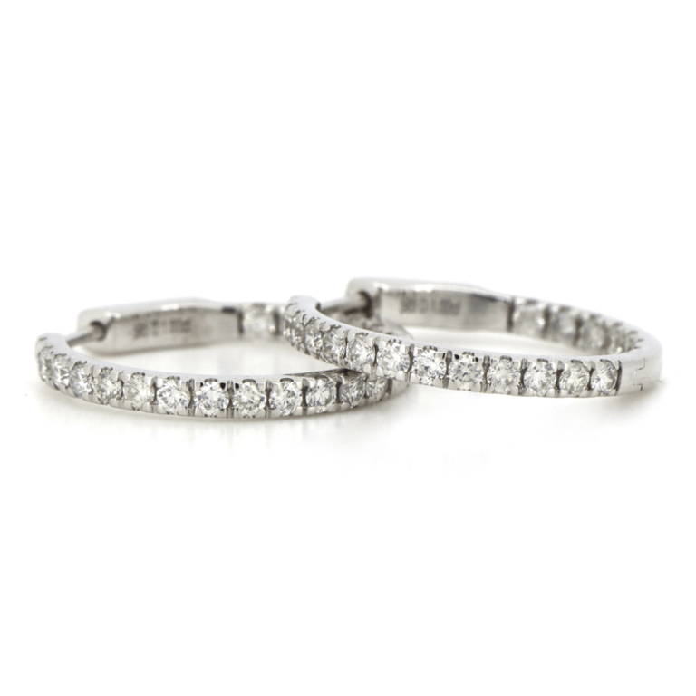 14K WHITE GOLD, 1.00CT TDW DIAMOND, HOOP EARRINGS.