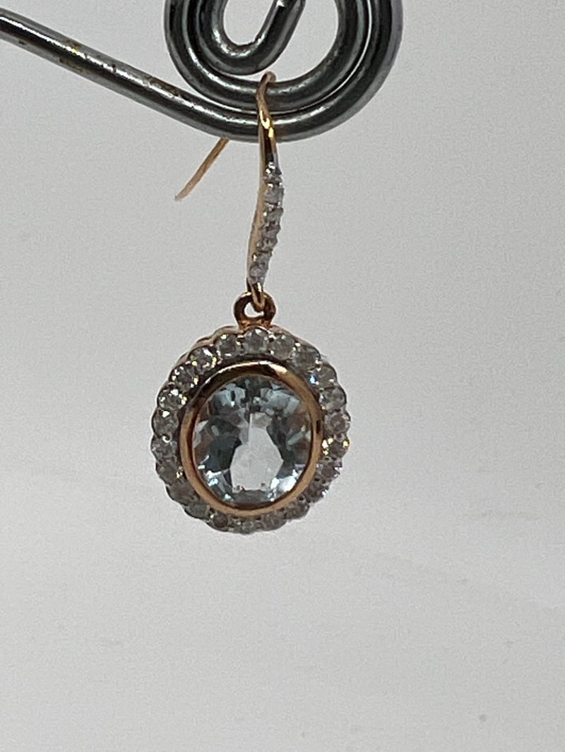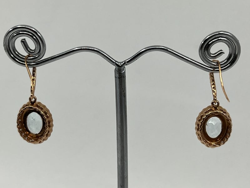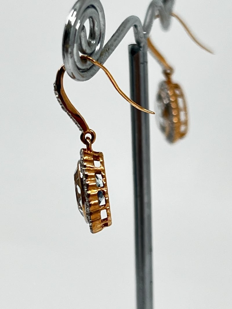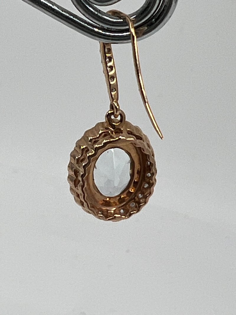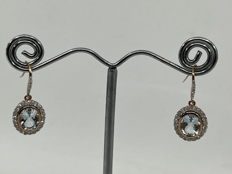 14CT ROSE GOLD AQUAMARINE AND DIAMOND EARINGS