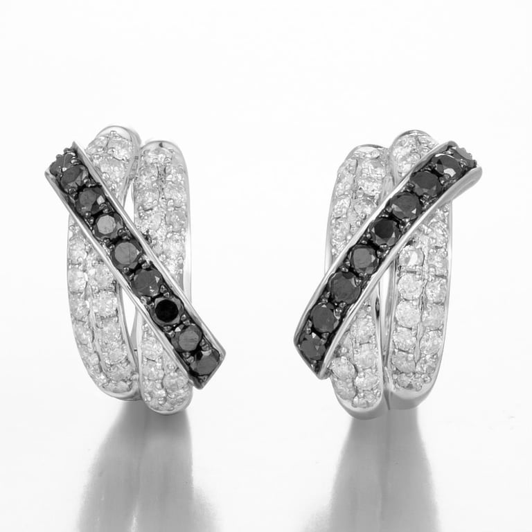 14CT WHITE GOLD BLACK DIAMOND AND DIAMOND EARRINGS FEATURING CENTRE, 18 ROUND BRILLIANT CUT, BLACK DIAMONDS (0.45CT TDW, OPAQUE, ENHANCED), BEAD SET, WITH 58 ROUND BRILLIANT CUT DIAMONDS (0.66CT TDW, G-H COLOUR, VS2-SI1 CLARITY), BEAD SET.
