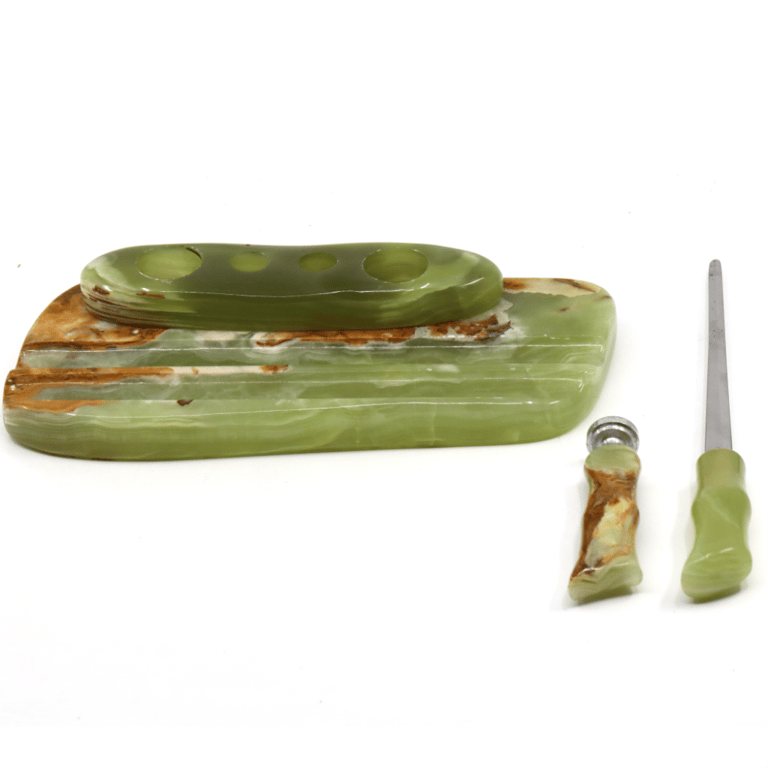Green Onyx, Executive Inkwell Desk Set. Includes Letter Opener And Wax Seal Handle. Condition: Pre-Owned.