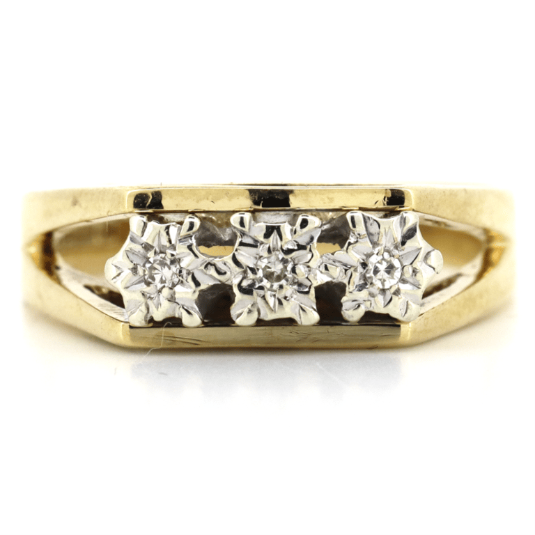 9K YELLOW/WHITE GOLD, DIAMOND TRILOGY RING. Ring Size M. Condition: Pre-Owned. 9K Yellow/White Gold, Diamond Trilogy Ring. Ring Size M. Condition: Pre-Owned. Condition: Good - Refer Images 0645837+6023