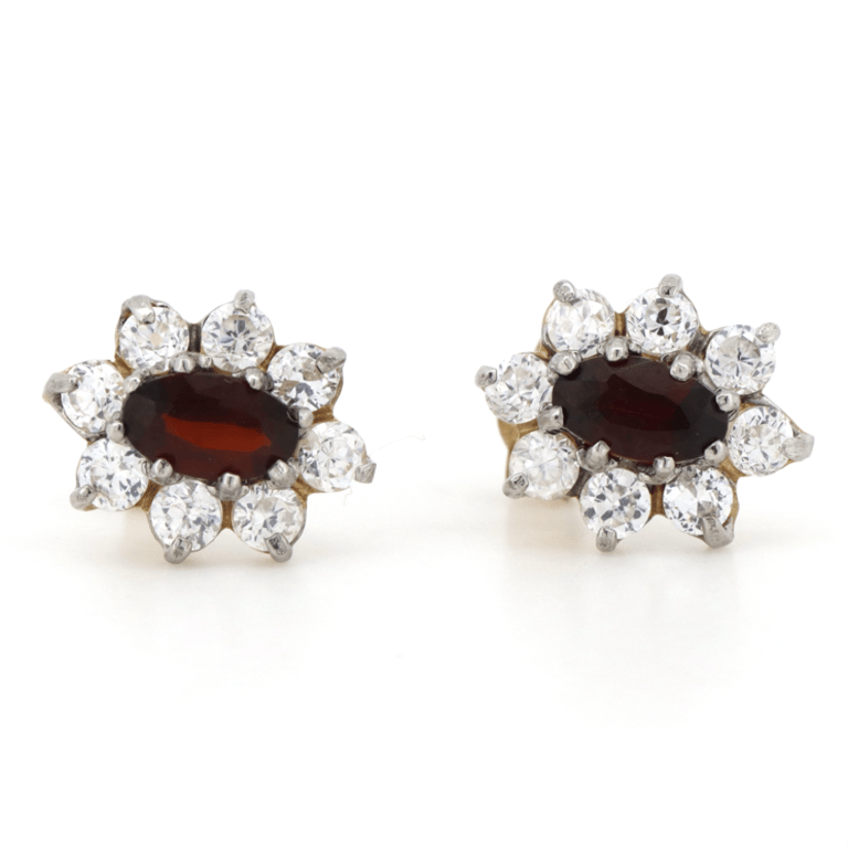 9K Yellow/White Gold, Ruby And Cubic Zirconia, Halo Stud Earrings. The Earrings Feature, Butterfly Post Backs And Weigh 0.945Grams. Condition: Pre-Owned.