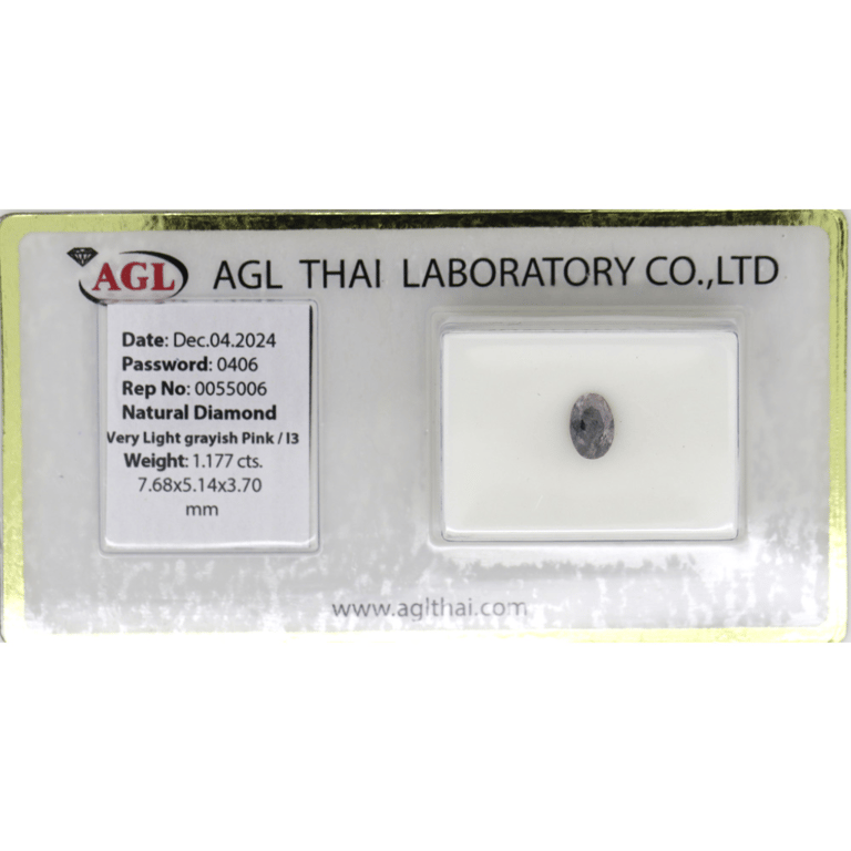 Oval Brilliant Cut, Very Light Greyish-Pink Colour, I3 Clarity, Loose, Unset. Stone Comes Sealed With Agl Report: #0055006.