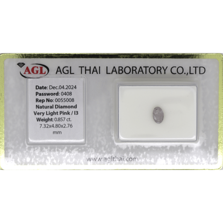 Oval Brilliant Cut, Very Light Pink Colour, I3 Clarity, Loose, Unset. Stone Comes Sealed With Agl Report: 0055008.