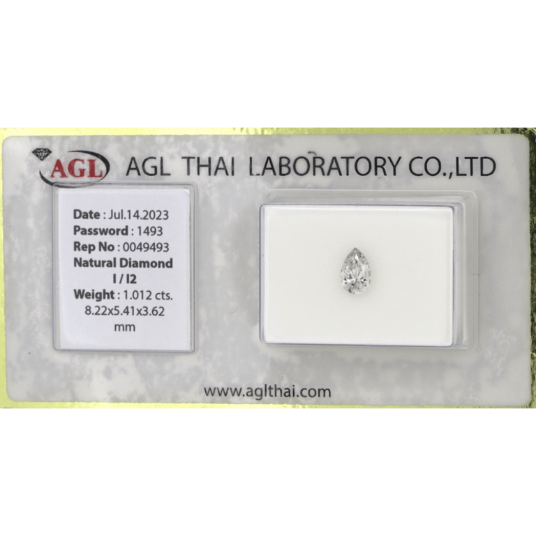 Pear Brilliant Cut, I Colour, I2 Clarity, Loose, Unset. Stone Comes Sealed With Agl Report: 0049493.