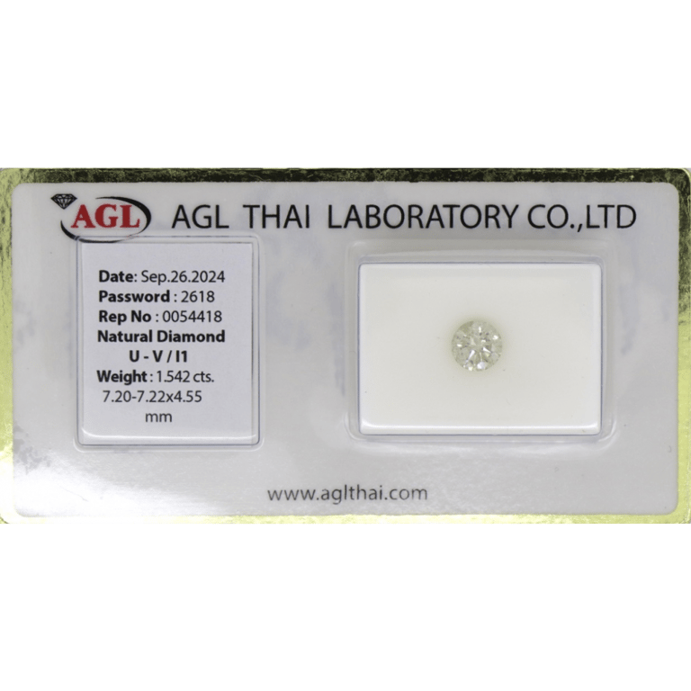 1.542CT CERTIFIED, NATURAL DIAMOND, ROUND BRILLIANT CUT, U-V COLOUR, I2 CLARITY, LOOSE, UNSET.