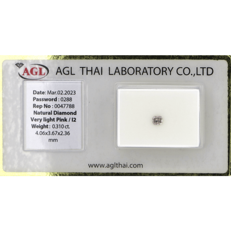 Octagon Brilliant Cut, Very Light Pink, I2 Clarity, Enhanced, Loose, Unset. Stone Comes Sealed With Agl Report: 0047788.