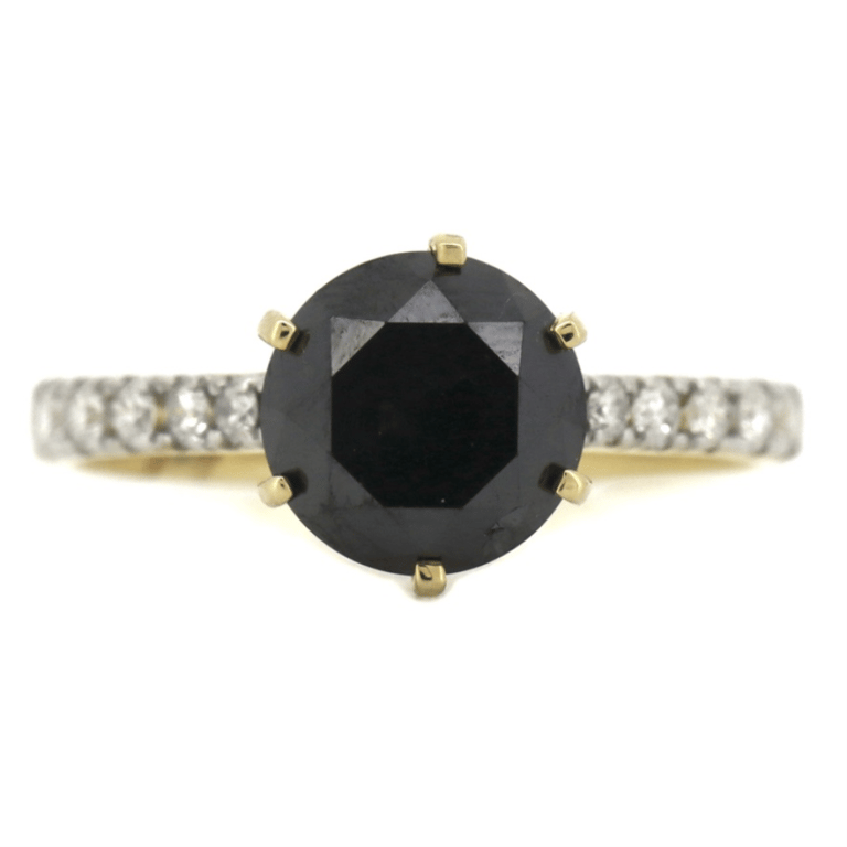 The Centre Features, One Round Brilliant Cut, Black, Diamond (2.61Ct, Opaque, Hpht Enhanced), Claw Set. Decorating The Band Are, 12 Round Brilliant Cut, Diamonds (0.25Ct Tdw, J-K Colour, Si1- Clarity), Bead Set. Ring Size N.