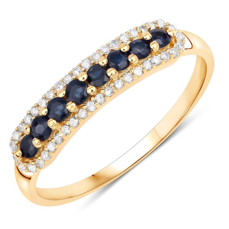 Exquisite 9K Yellow Gold Ring Adorned with Blue Sapphires and Sparkling Diamonds