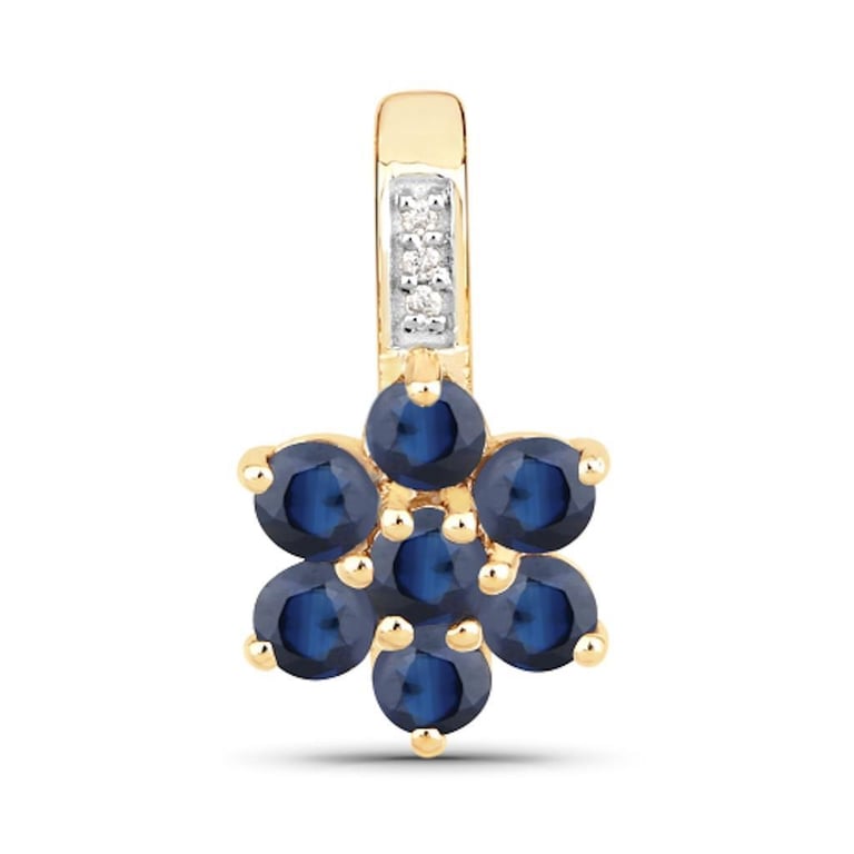 Exquisite 9K Yellow Gold Pendant Adorned with Blue Sapphires and White DiamondsStep into a realm of elegance with this stunning 9K yellow gold pendant, a true masterpiece that captures the essence of timeless beauty. This exquisite piece features seven radiant blue sapphires, each measuring 2.50mm, that dance in perfect harmony, showcasing their enchanting deep blue hue. The sapphires, known for their royal allure, create a captivating focal point that speaks to sophistication and charm.Surrounding these mesmerizing stones are three sparkling white diamonds, each meticulously cut to a round 0.80mm size. With a clarity grading of SI-2 and a color grading of HI, these diamonds illuminate the pendant with their brilliant sparkle, adding an exquisite touch of luxury. The white pen rhodium finish enhances the overall brilliance, ensuring that this pendant shines brightly in any light.Designed without a chain, this pendant allows for versatile styling, inviting you to pair it with your favorite necklace or to showcase it as a standalone statement piece. Whether worn for a special occasion or as an everyday indulgence, this pendant is destined to become a cherished addition to your jewelry collection, a symbol of elegance that transcends time. Elevate your style with this breathtaking piece that embodies both luxury and grace.