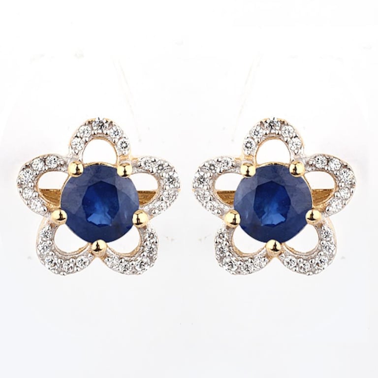 Indulge in the captivating allure of these exquisite 9K Yellow Gold Earrings, where elegance meets sophistication. Each earring features a stunning 5.00mm round blue sapphire, radiating a deep, royal hue that evokes a sense of timeless luxury. Surrounded by a constellation of brilliant white diamonds, these earrings boast a total of 50 sparkling stones, expertly set to enhance their beauty and brilliance.