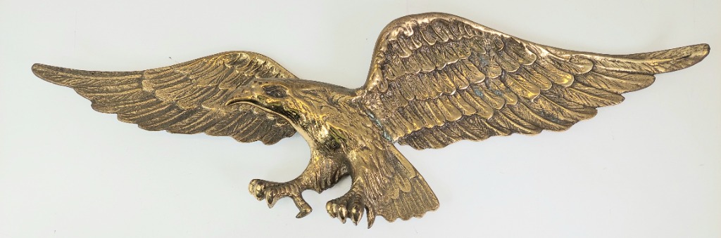 A SOLID VINTAGE BRASS FLYING BOLD AMERICAN EAGLE PLAQUE 700MM WIDE APPROXIMATELY
