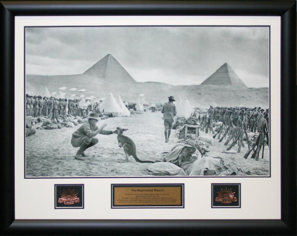 Many Australian Units Brought Kangaroos And Other Australian Animals With Them To Egypt, And Some Were Given To The Cairo Zoological Gardens When The Units Went To Gallipoli. This Is A Quintessentially Australian Image Which Has Been Framed With Two Replica Rising Sun Badges.
