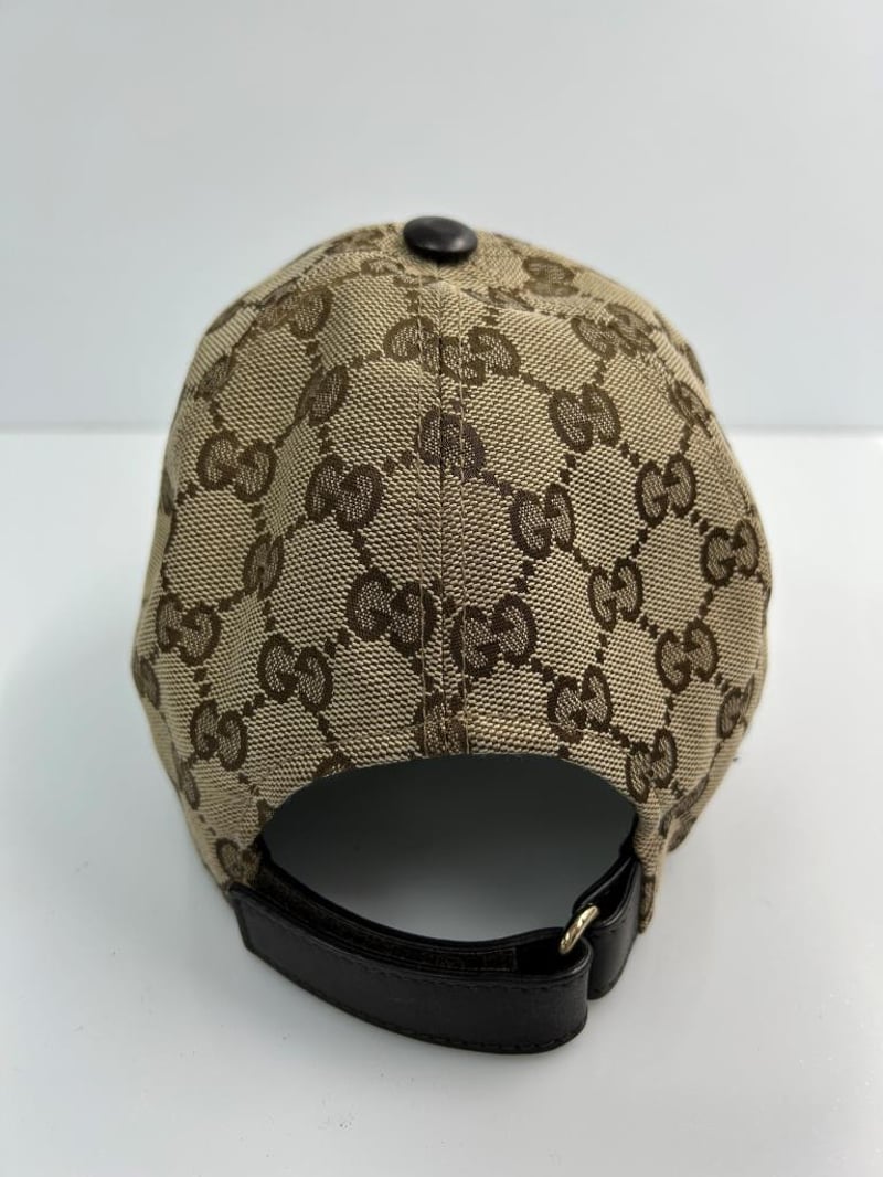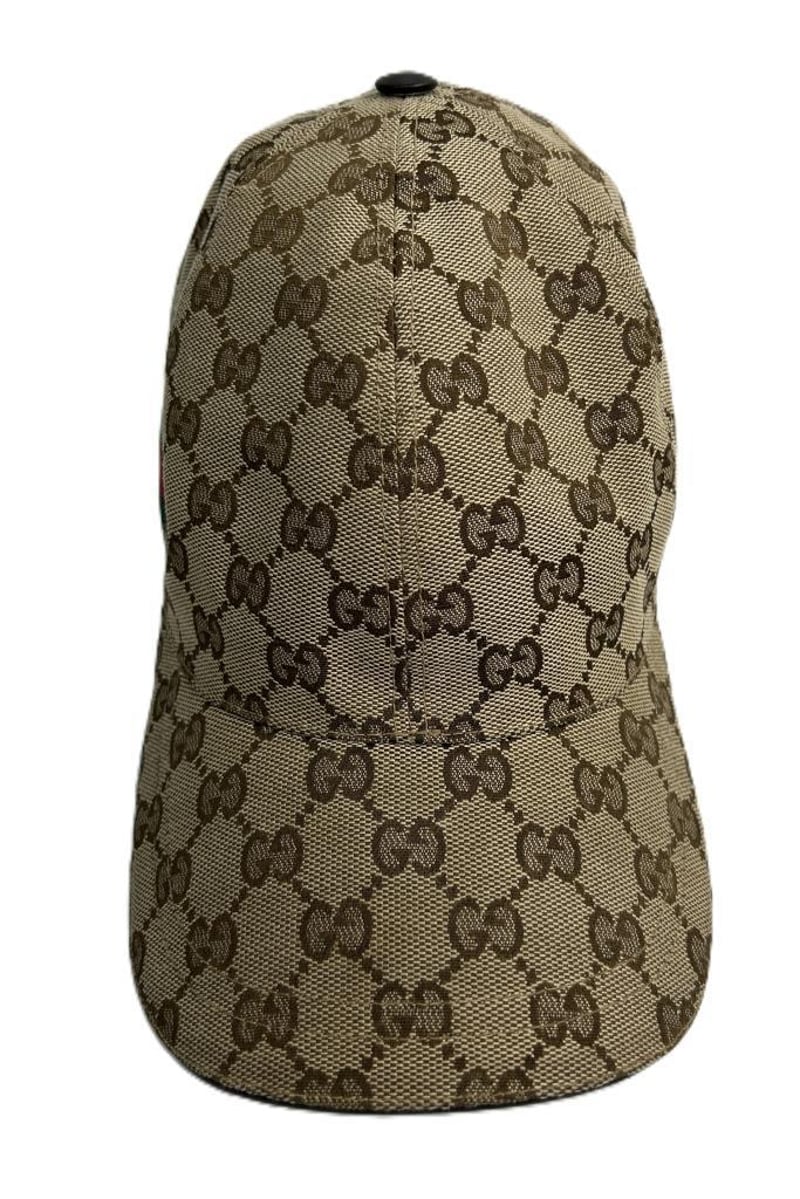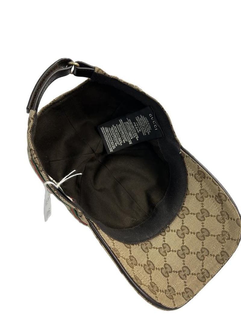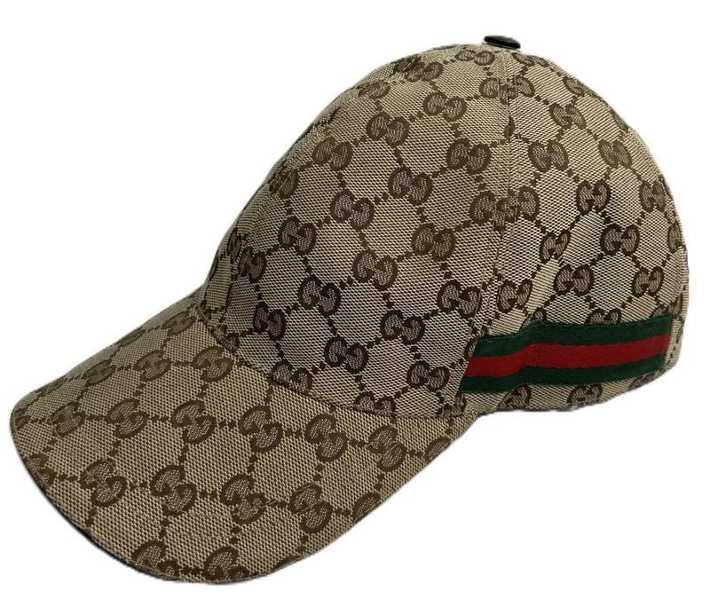 GUCCI GG SUPREME BASEBALL CAP, GG SUPREME CANVAS & GREEN/RED WEB STRIPE, SIZE M, MADE IN ITALY.