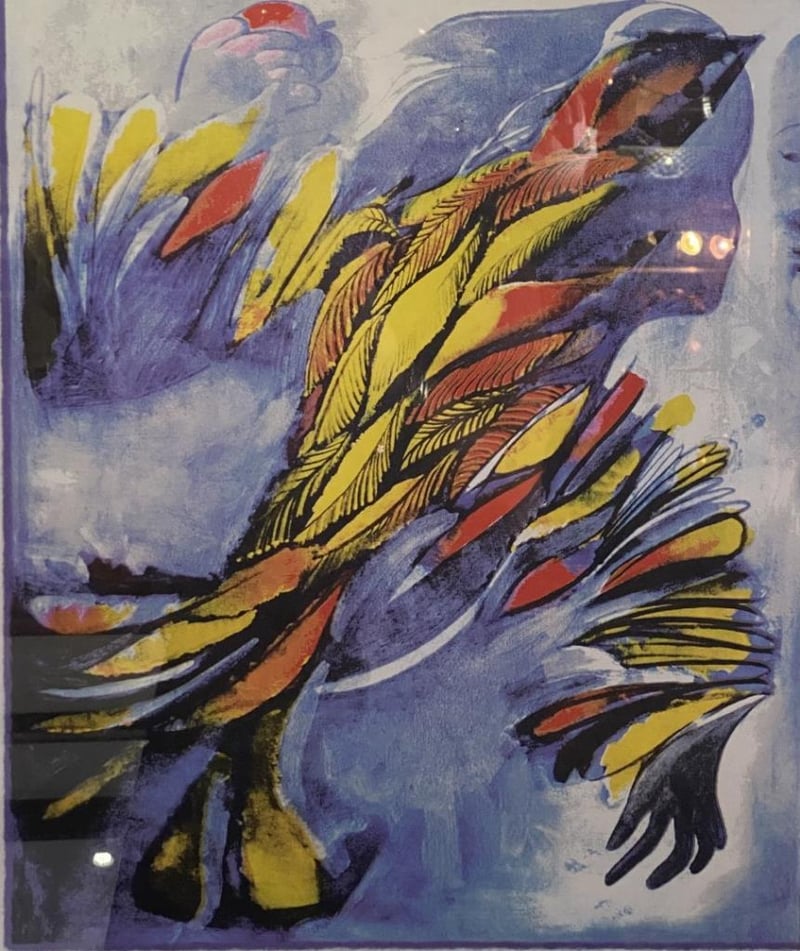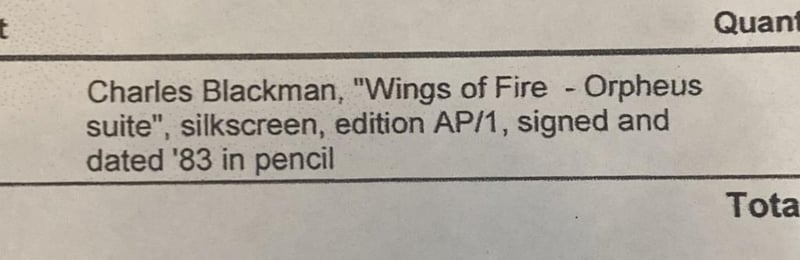 CHARLES BLACKMAN ‘WINGS OF FIRE – ORPHEUS SUITE’ SILKSCREEN, ARTIST – CHARLES BLACKMAN, TITLE – WINGS OF FIRE – ORPHEUS SUITE, MEDIAN – SILKSCREEN, BLACK & GOLD FRAME MEASURES 79 X 90CM, EDITION AP/1 SIGNED AND DATED ’83 IN PENCIL.