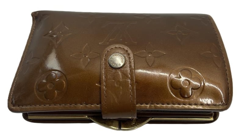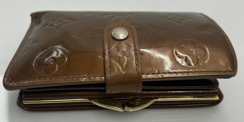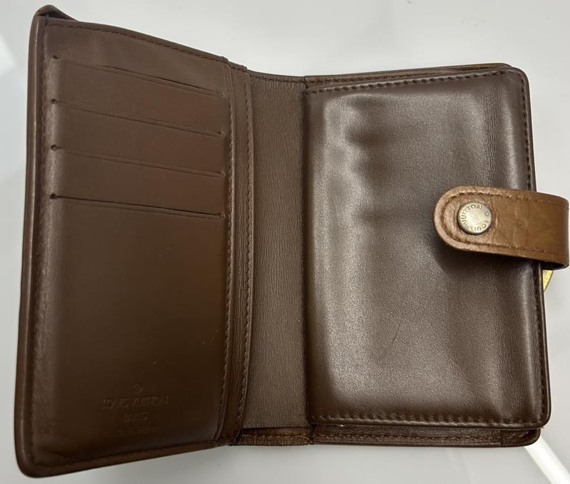 LOUIS VUITTON PORTEFUILLE VIENOIS MONOGRAM VERNIS BI-FOLD WALLET, GOLD-TONE HARDWARE, FOLD OVER FLAP CLOSURE, 4 CARD SLOTS, COIN PURSE, BANK NOTE COMPARTMENT, 2 SLIP POCKETS, MEASURES 8.5 X 14 X 3CM, MADE IN FRANCE. NB: THERE IS SOME DISCOLORATION ON THE GOLD-TONE HARDWARE DUE TO WEAR & AGE.