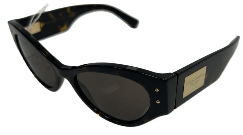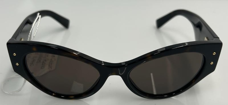 DOLCE & GABBANA DG4480 BLACK CAT-EYE SUNGLASSES FEATURING GLOSSY BLACK ACETATE FRAMES WITH BROWN GRADIENT LENSES AND GOLD-TONE STUD DETAILING ON THE FRONT CORNERS. MADE IN ITALY.