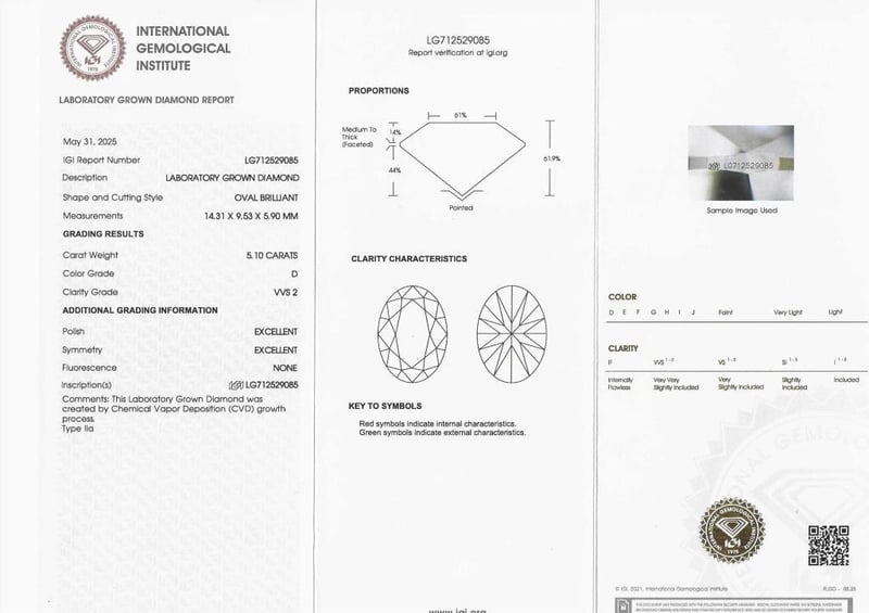 Please note that while all lab grown diamonds listed include certification, the report number or identification may vary upon arrival. This is due to standard manufacturing and batching processes. However, the diamond’s specifications — including carat, color, cut, and clarity — will match or may even exceed those advertised.