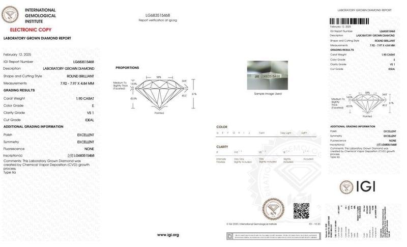 Please note that while all lab grown diamonds listed include certification, the report number or identification may vary upon arrival. This is due to standard manufacturing and batching processes. However, the diamond’s specifications — including carat, color, cut, and clarity — will match or may even exceed those advertised.