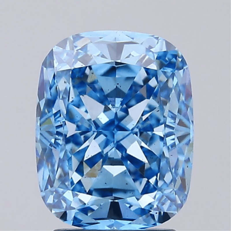 2.53 CARAT CUSHION CUT DIAMOND FANCY VIVID BLUE /VS2