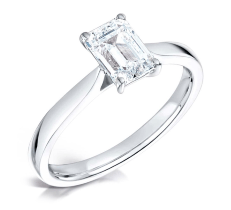 Emerald Cut Diamond Solitaire RingAn elegant emerald-cut diamond solitaire weighing 0.46ct, set in platinum (950). This diamond is graded D colour and VS2 clarity, embodying understated luxury and brilliance. Offered in new condition with GIA certification.Ring Size: M