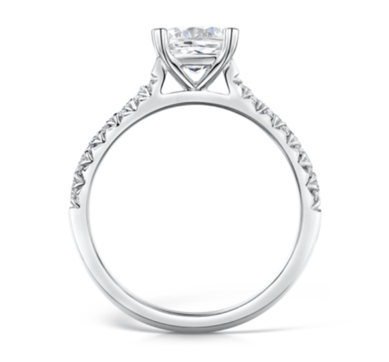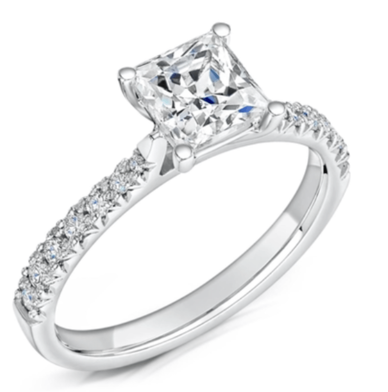 Princess Cut Solitaire with Round Brilliant ShouldersThis elegant platinum (950) ring features a 0.50ct princess-cut diamond enhanced by 0.24ct of round brilliant stones set into the shoulders. Graded G colour and SI1 clarity, offering a refined and contemporary appeal. Presented in new condition with GIA certification.Ring Size: N