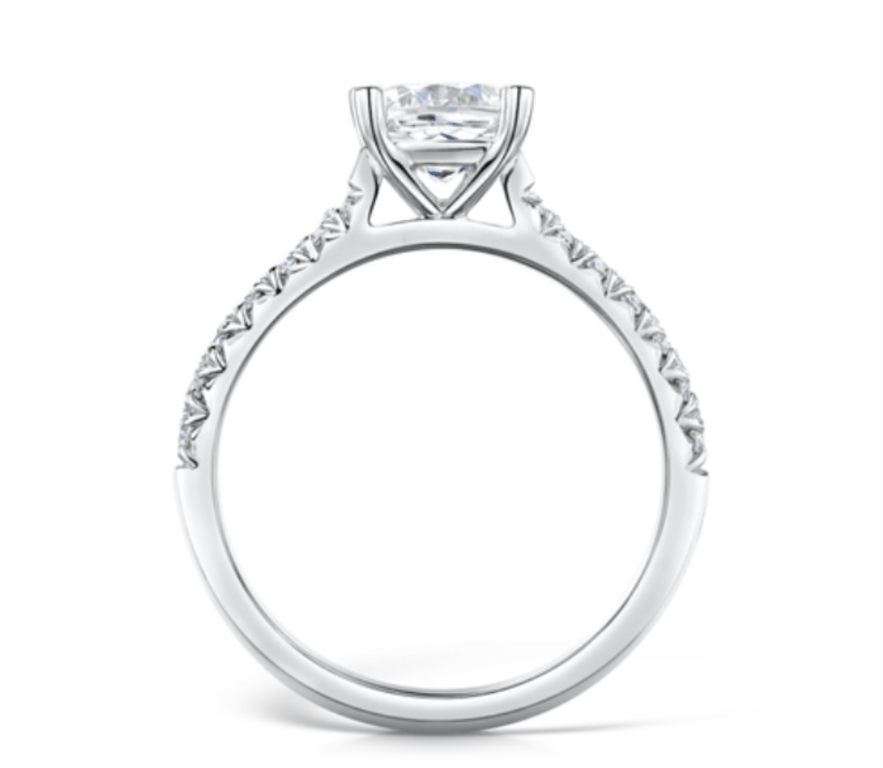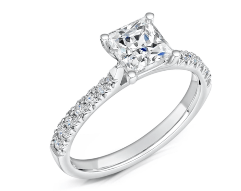 Princess Cut Solitaire with Round Brilliant ShouldersThis platinum (950) ring highlights a 0.35ct princess-cut centre diamond with 0.14ct of round brilliant accents along the shoulders. Graded D colour and VS2 clarity for crisp sparkle. Presented new with GIA certification.Ring Size: M