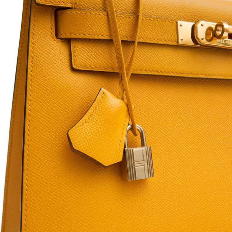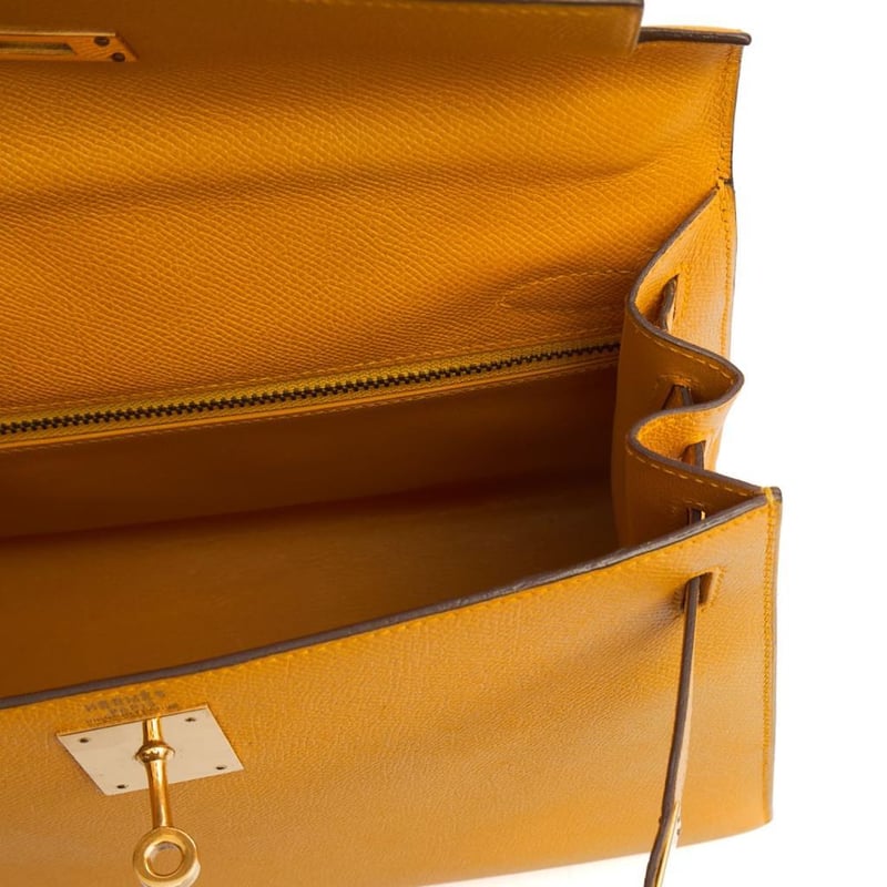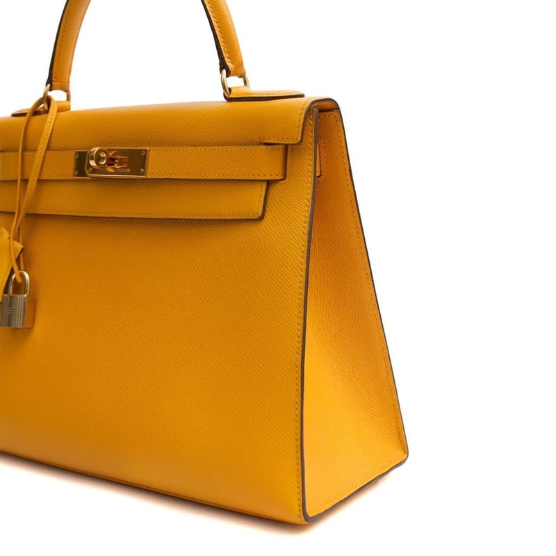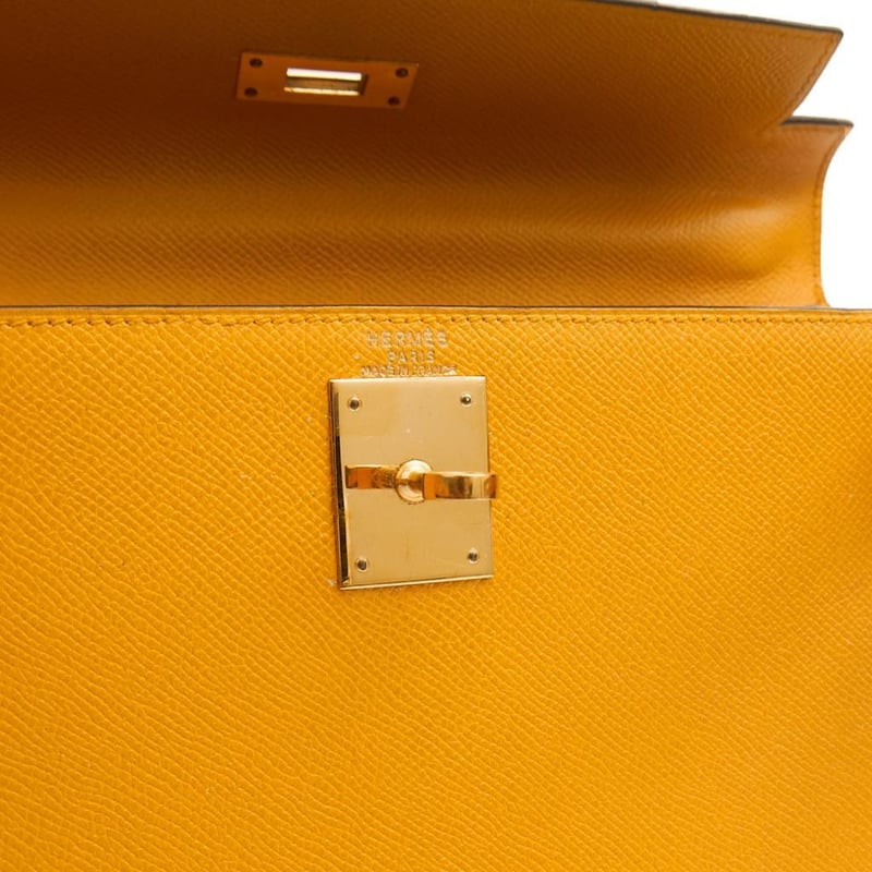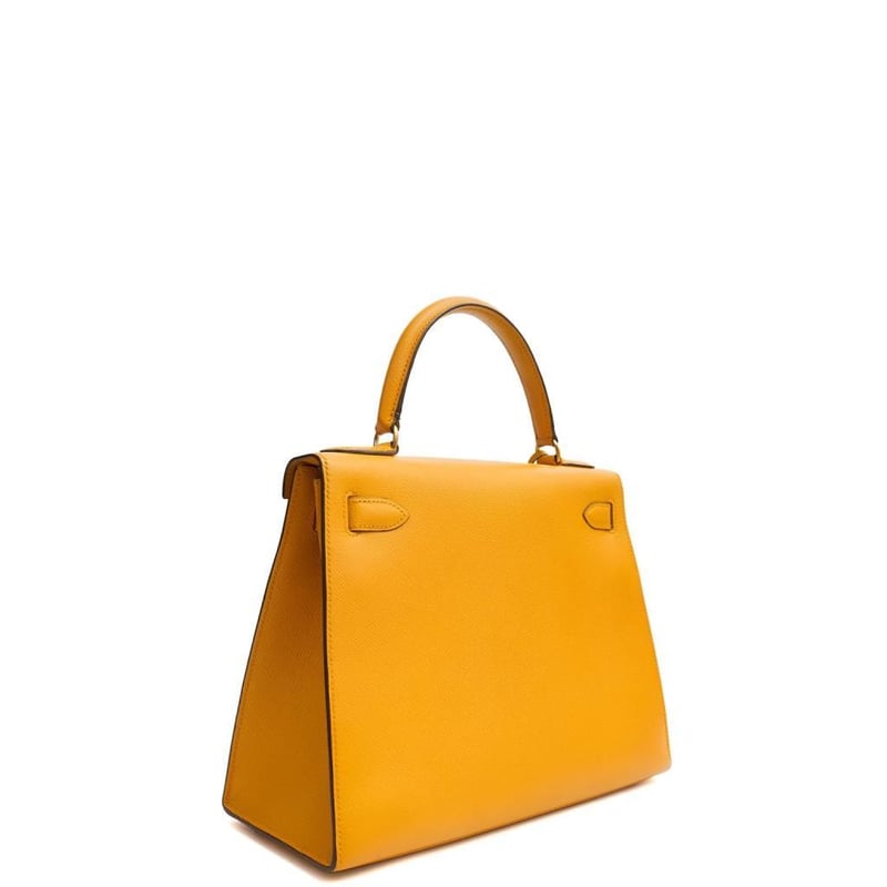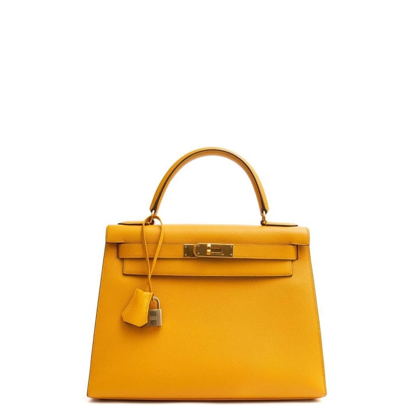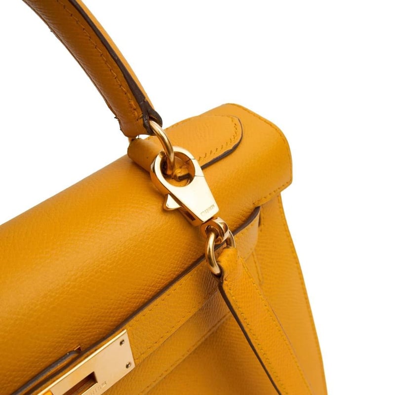 Hermes Jaune Ambre Kelly 28 Top Handle Indulge in the timeless elegance of this exquisite pre-loved Hermes Kelly 28 handbag, crafted from luxurious leather with sophisticated charm. 100% authentic and in excellent condition. Manufacturer Colour Name: Jaune Ambre Material: Barenia Faubourg Leather with Palladium Hardware Age: 2024 (Purchased from Hermes start of June 2025) HxWxD: 22 x 28 x 10 cm Condition: Excellent Condition Guide The bags we sell are listed under the following grades of quality: Brand New: These bags have never been used and show no signs of wear. Excellent: These bags have had minimal use and show no signs of wear. Great: These bags are in fantastic condition with very little signs of wear Very Good: These bags will show minor signs of wear and imperfections. Good: These bags will show signs of wear and have small imperfections. Fair: Often reserved for vintage items, fair condition items will have been loved by their previous owner and show signs of wear or aging.