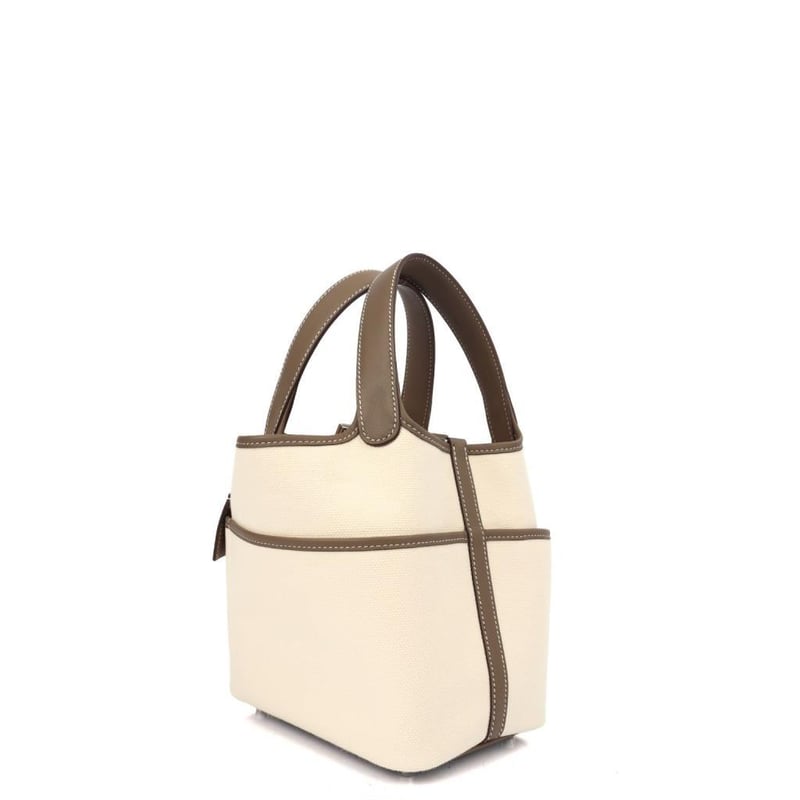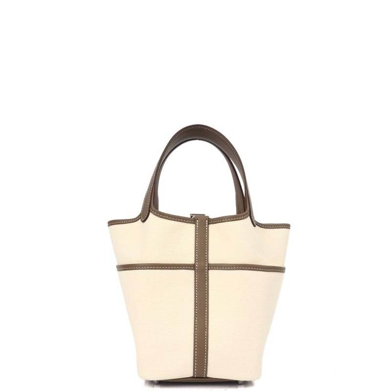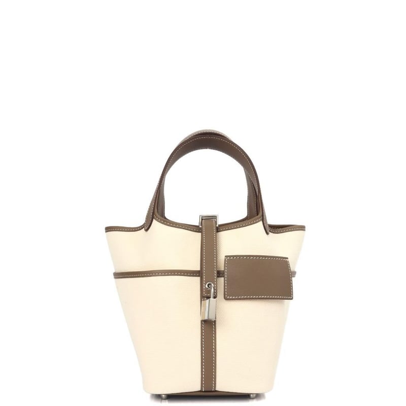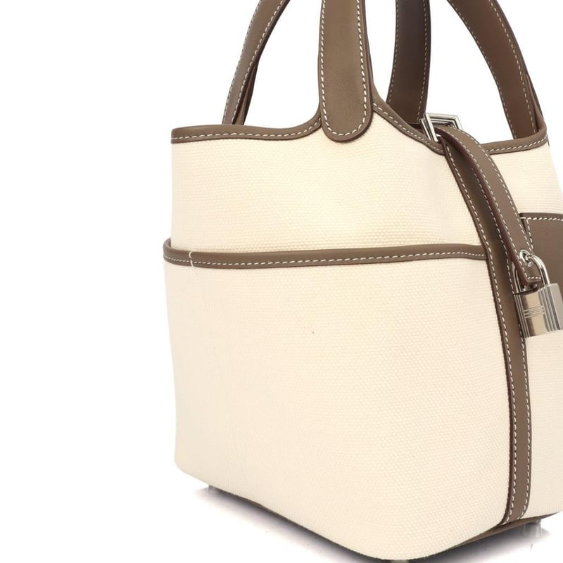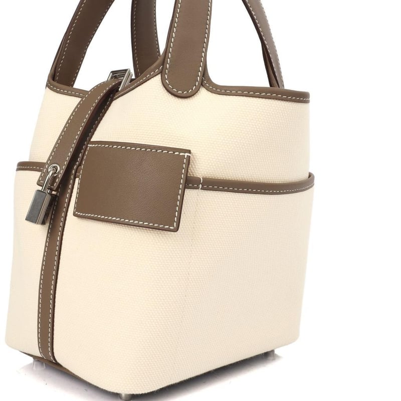 Hermes Etoupe Picotin 18 Bucket Bag Classic Hermes Picotin 18 in Etoupe Swift Leather, combining refined craftsmanship and effortless elegance. Features top handle and palladium hardware. Manufacturer Colour Name: Etoupe Material: Goeland Canvas with Palladium Hardware Age: 2024 HxWxD: 18 x 18 x 13 cm Condition: Excellent Condition Guide The bags we sell are listed under the following grades of quality: Brand New: These bags have never been used and show no signs of wear. Excellent: These bags have had minimal use and show no signs of wear. Great: These bags are in fantastic condition with very little signs of wear Very Good: These bags will show minor signs of wear and imperfections. Good: These bags will show signs of wear and have small imperfections. Fair: Often reserved for vintage items, fair condition items will have been loved by their previous owner and show signs of wear or aging.