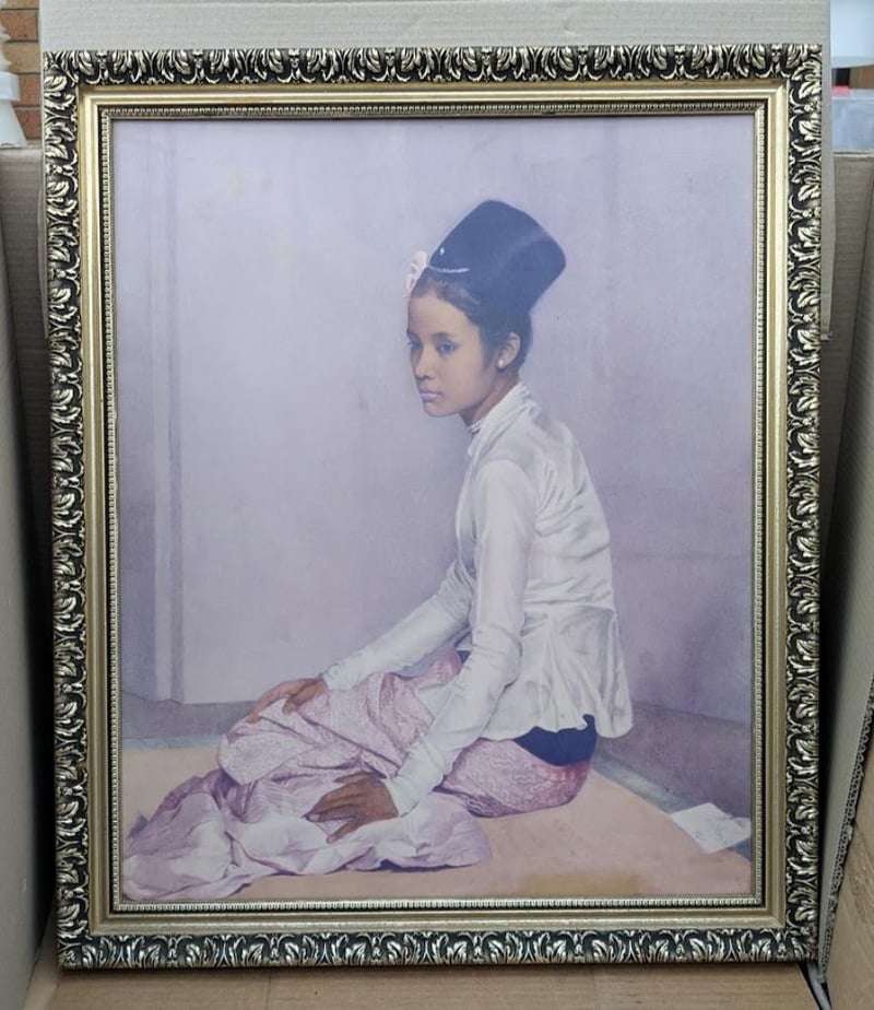 VINTAGE FRAMED PRINT OF BURMESE PRINCESS SAW OHN NYUN PAINTED BY SIR GERALD KELLY 70CM X 59CM