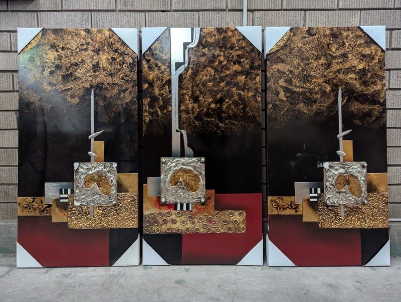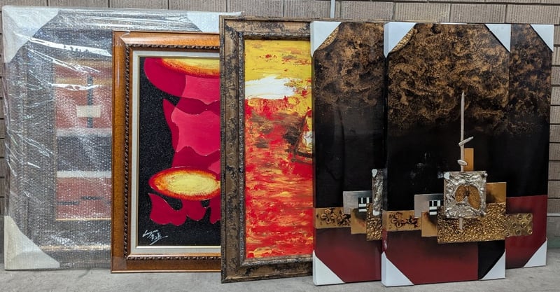 SIX MIXED MEDIA WALL ARTWORKSFramed Pieces And Timber Panel Artwork Set,Artwork Sizes Range From Approx: 100X50Cm - 103X93Cm584945+12