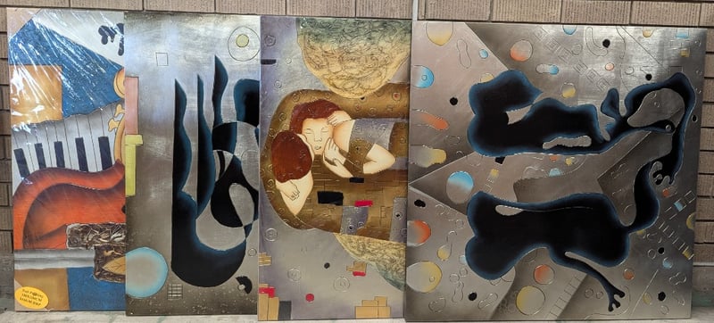 FOUR TIMBER BOARD ARTWORKSPanel Size Approx: 100Cm X 100CmCondition: Good - Refer To Images584945+22