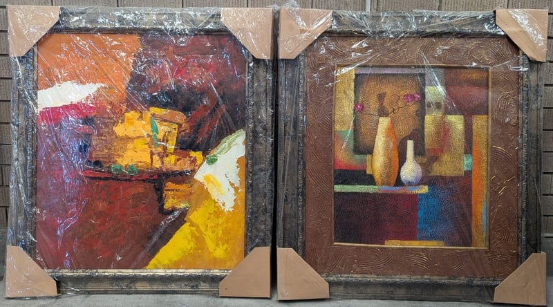 TWO OIL AND ACRYLIC PAINTINGS ON BOARD ARTWORKSFrame Size Approx: 103 X 93CmCondition: Good - Refer To Images584945+39