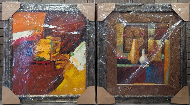 TWO OIL AND ACRYLIC PAINTINGS ON BOARD ARTWORKS