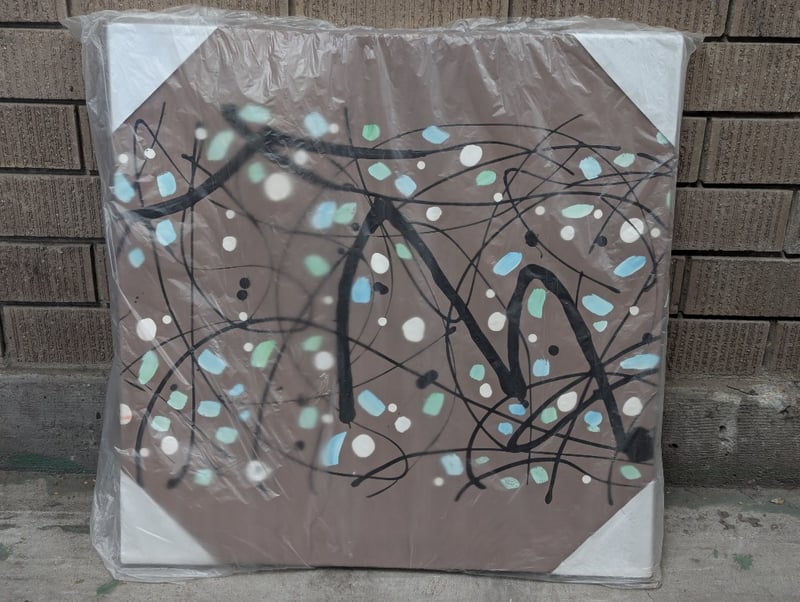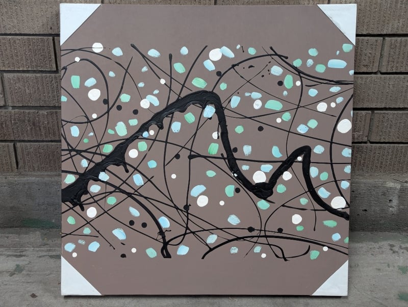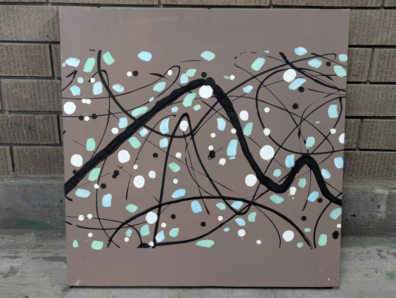 Artworks Feature Splatter Designs With Thick Line Running Through