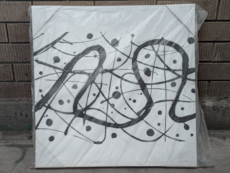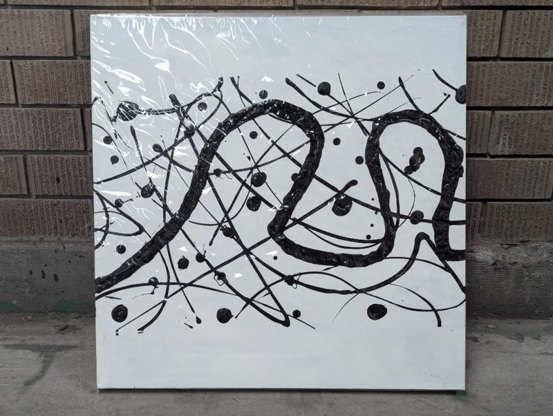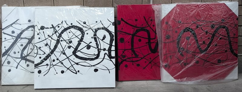 Artworks Feature Splatter Designs With Thick Line Running Through