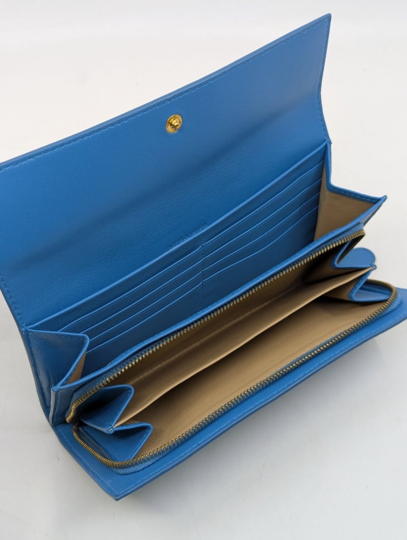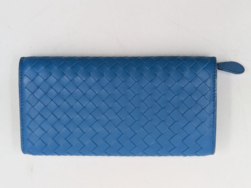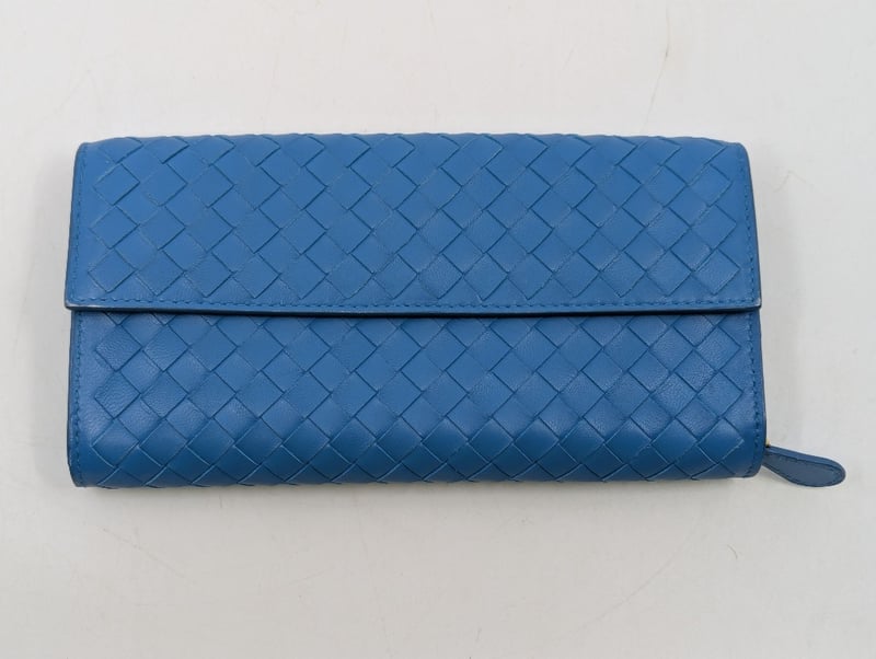 BOTTEGA VENETA INTRECCIATO WALLET Item Size: Height: 10cm, Width: 19cm, Depth: 3cm Material: Nappa Leather With Signature Intrecciato Weave Colour: Blue Origin: Made In Italy Accompanied By Bottega Veneta Storage Box Condition: Good - Refer To Images SHELF 10D 586236+1