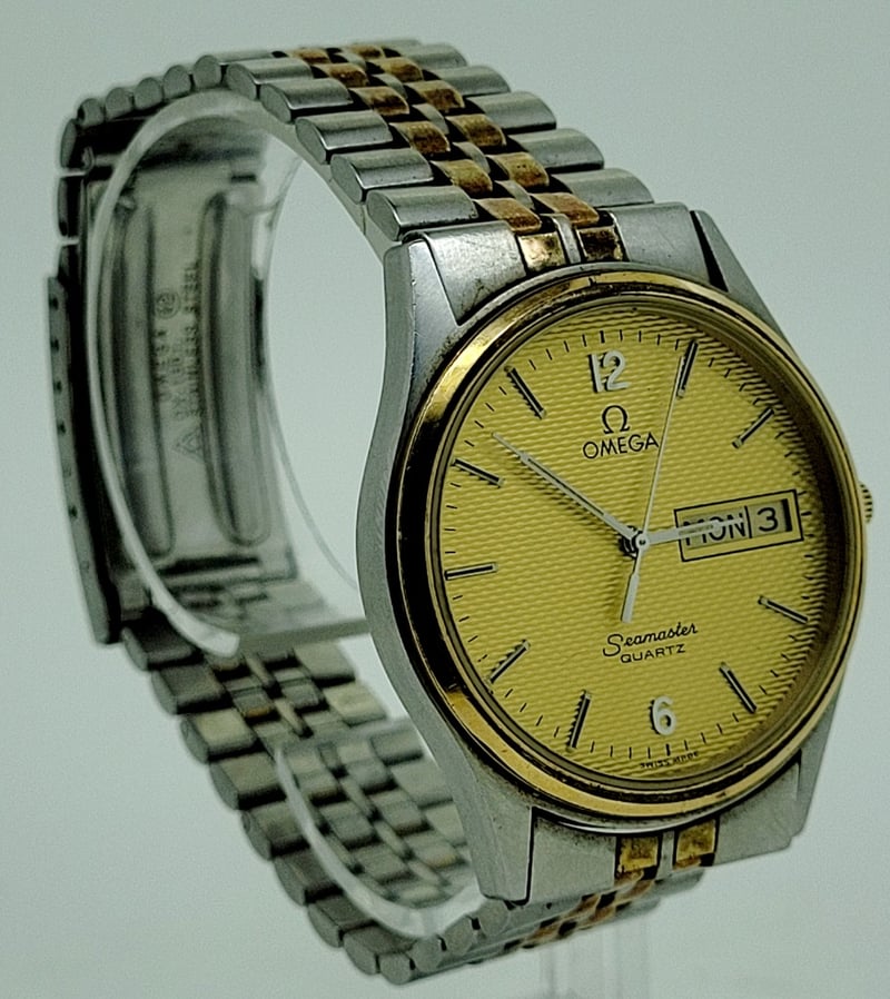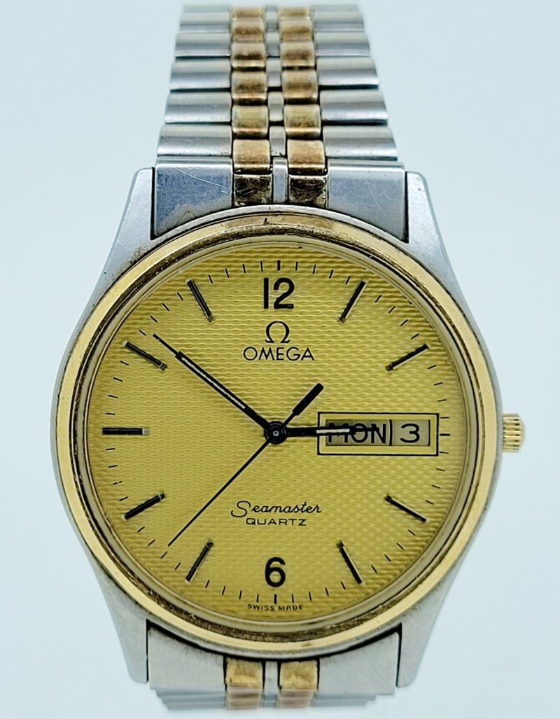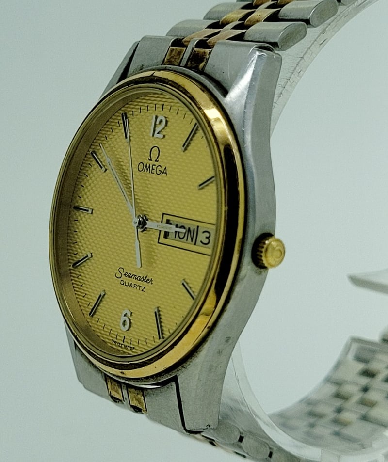 OMEGA SEAMASTER CHAMPAGNE TWO TONE CASE SIZE: 38MM MOVEMENT: QUARTZ BOX: NOT INCLUDED PAPERS: NOT INCLUDED Condition: Good - Refer To Images 488309+2