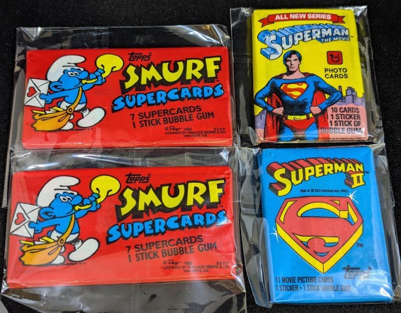 Includes Superman The Movie And Superman 2 Movie Cards, Sticker And Bubblegum Pack, Two Smurf Supercard Sets With Bubble Gum